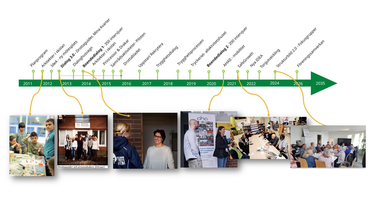 Arbetet har successivt gått från dialog till ökat samskapande, där invånare inte bara deltar utan också är med och utvecklar och driver innehåll i området. Ett exempel är mötesplatsen Tillsammans DDF, som vuxit fram ur dialog- och utvecklingsprocesser och idag drivs med ett starkt lokalt engagemang.