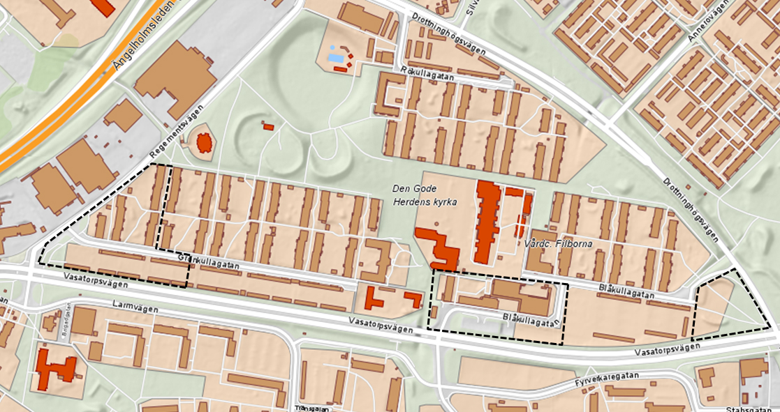 Arbetet kommer att börja på Drottninghögs centrum och sedan kommer man fortsätta med östra Drottninghög vid grönområdet mellan Vasatorpsvägen och Drottninghögsvägen samt Västra Drottninghög vid grönkullagatan 1-7.